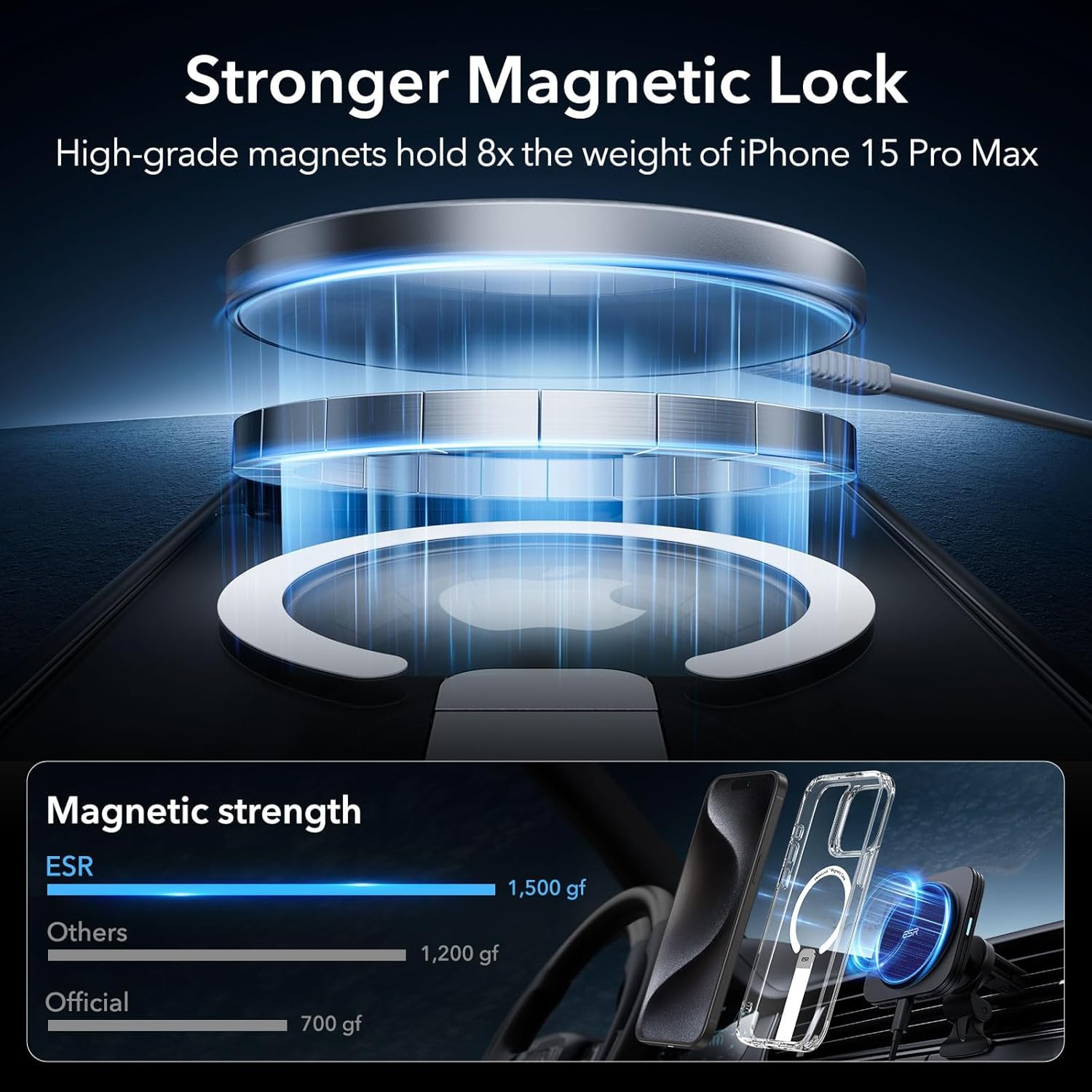 - Stronger Magnetic Lock: powerful built-in magnets with 1,500 g of holding force enable faster, easier place-and-go wireless charging and a secure lock on any MagSafe accessory