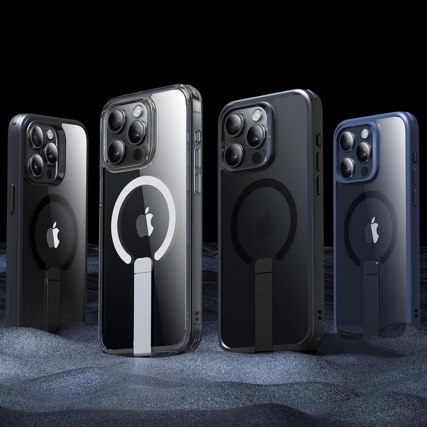 ESR iPhone 15 Pro Max Case with Kickstand, Military-Grade Shockproof Protection, Magnetic Fully Adjustable Flickstand Phone Case, Compatible with MagSafe Accessories, Boost Series, Clear