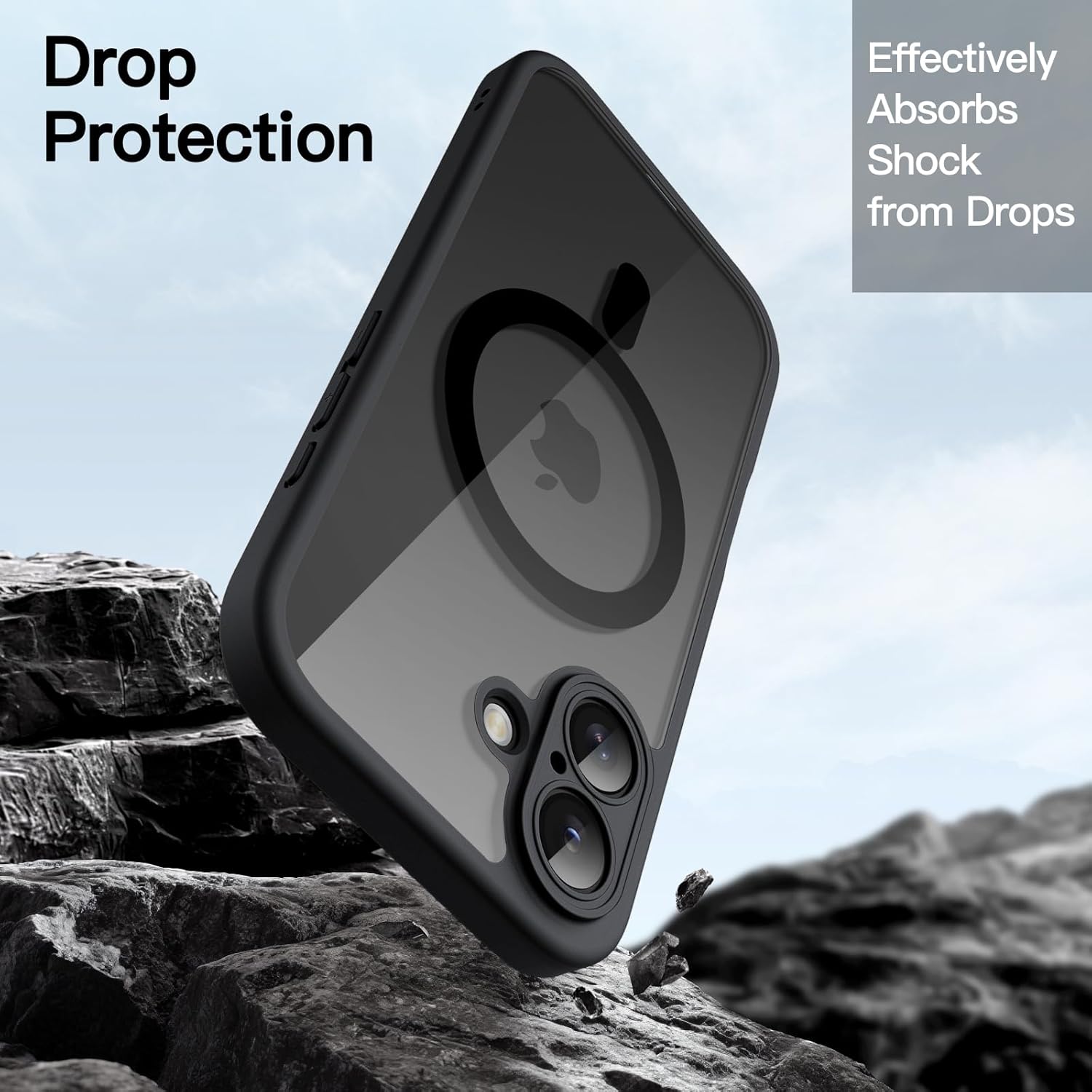 iPhone 17 Case with Built-in Tempered Glass Screen Protector and Camera Control Button, Compatible with MagSafe, 360 Degree Full Body Cover (Black)