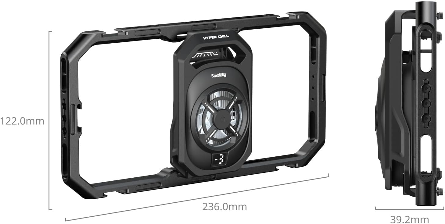 SmallRig Universal Hyper Chill Cooling Phone Cage for iPhone/Android, with 15W Active Cooler & 2-in-1 USB-C Adapter & Power Bank Holder, Compatible 2.5-3.1" Phones, Live Streaming Video Shooting-5275