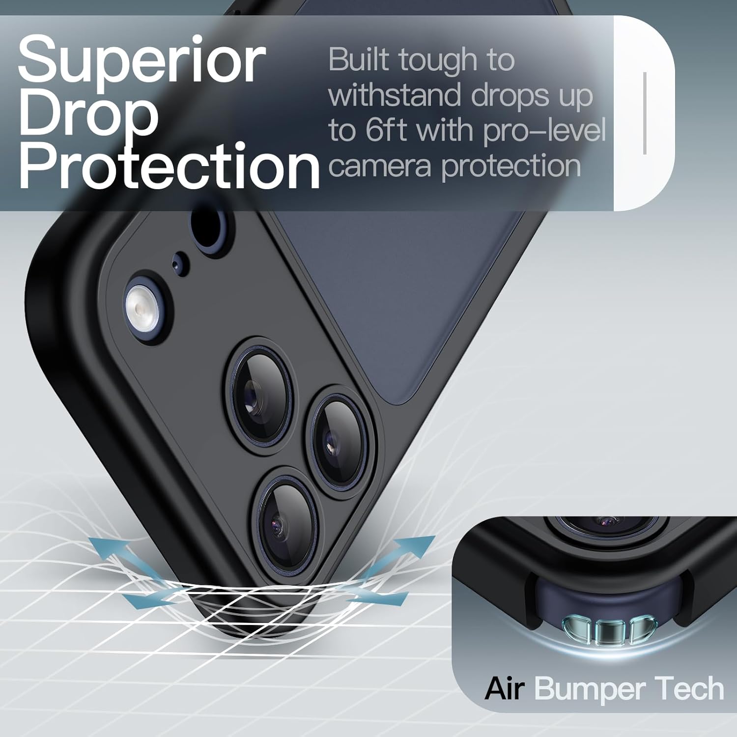 iPhone 17 Pro Case Matte, Shockproof Military Grade Drop Protection, Full Camera Lens Protection, Frosted Translucent Back Minimalist Phone Cover (Black)