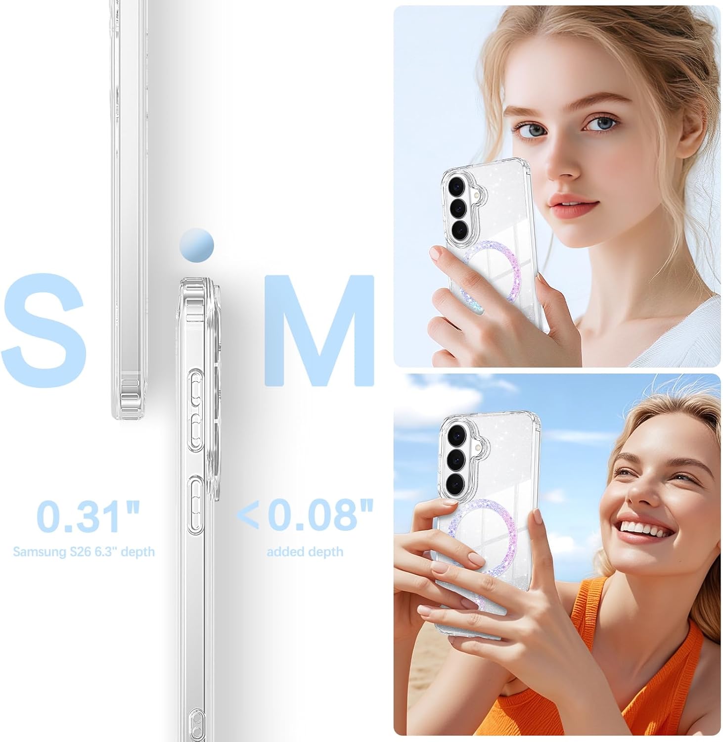 Samsung S26 Case Glitter, Magnetic Case Compatible with MagSafe - Clear