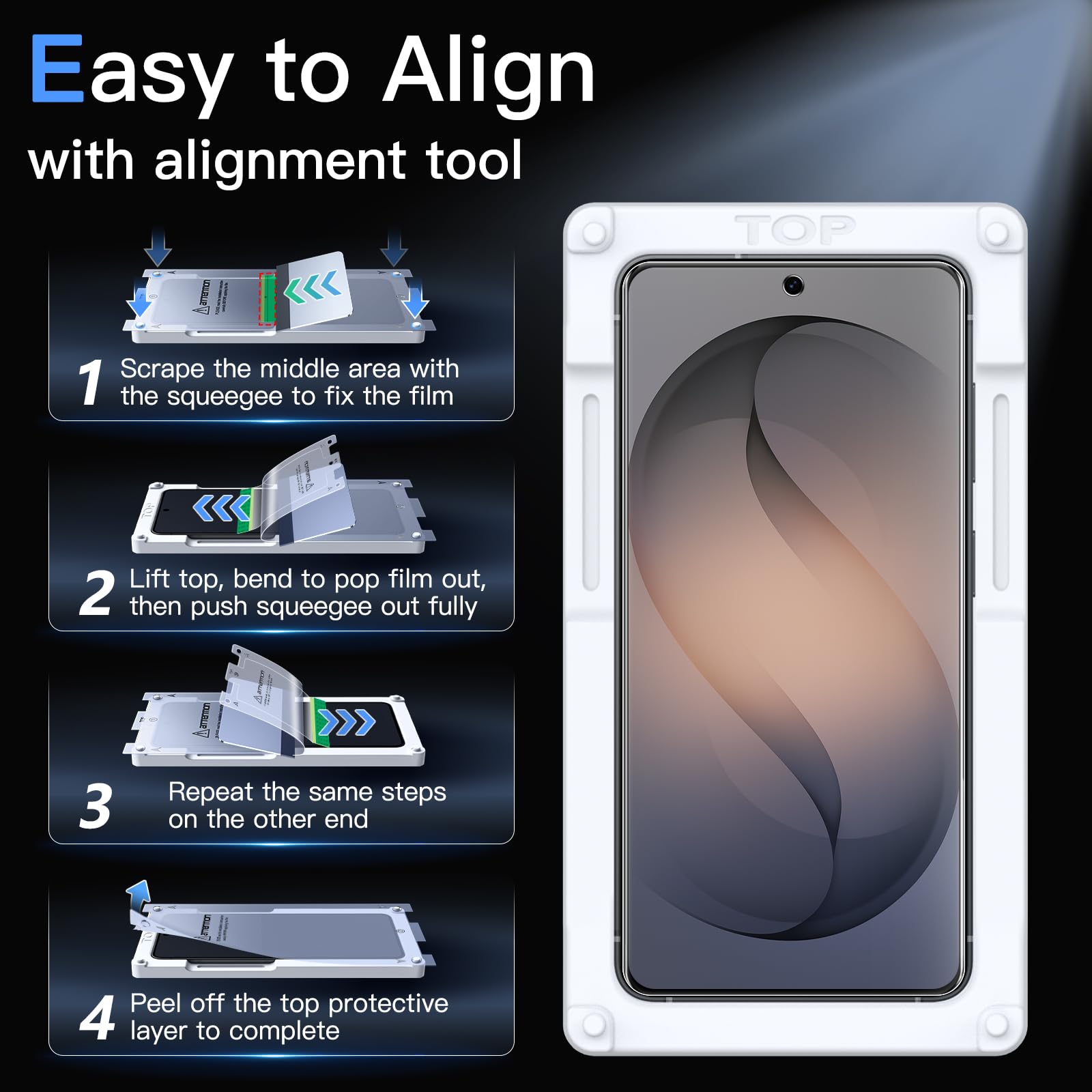- [Easy and Simple Installation] The included all-new soft film application tool makes installation effortless. Simply insert and align, then gently push with the squeegee to easily achieve a bubble-free, perfect fit