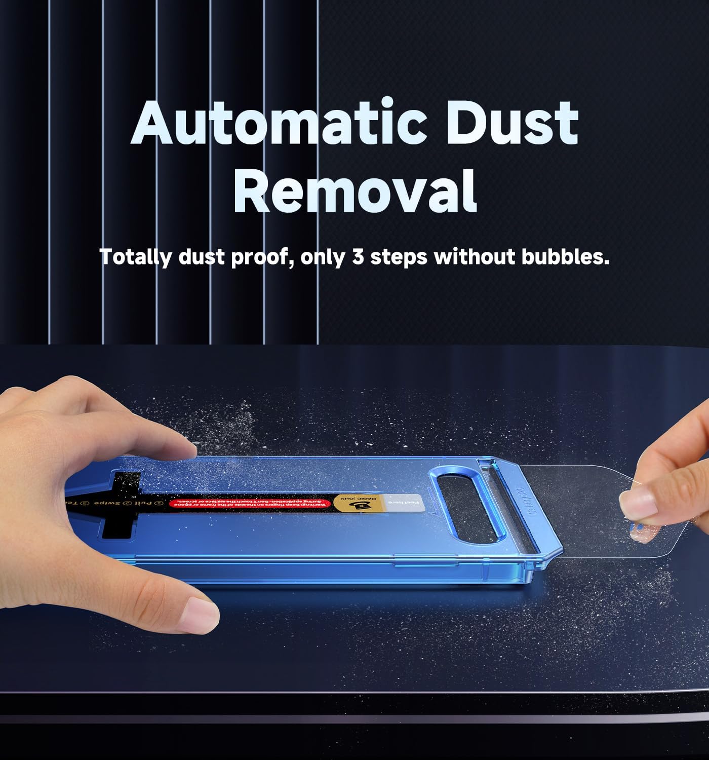 - [Automatic Dust Removal Tech] Just cover and pull, the screen protector automatically aligns and takes away the dust. No more worrying about bubbles and dust.Watch our Installation Video to see how easy it is to use our Dust-Elimination Installation Screen Protector.
