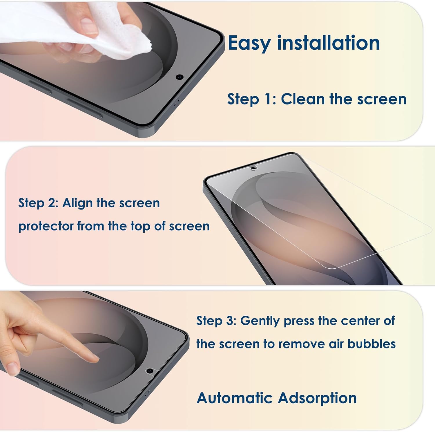 • Perfect Fit & Full Coverage --- Precisely designed compatible with samsung galaxy S26 6.3" ONLY, this tempered glass offers edge-to-edge protection without interfering with touch sensitivity or the phone's sleek design. [❌ DON'T COMPATIBLE WITH SAMSUNG GALAXY S26 PLUS 6.7"/ULTRA 6.9"!!!]
