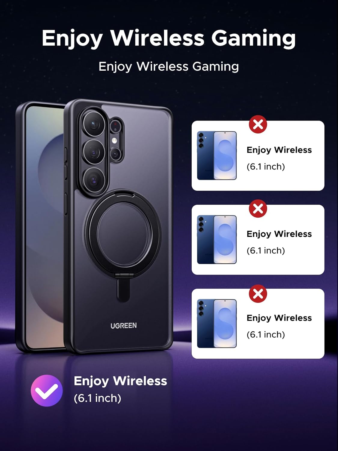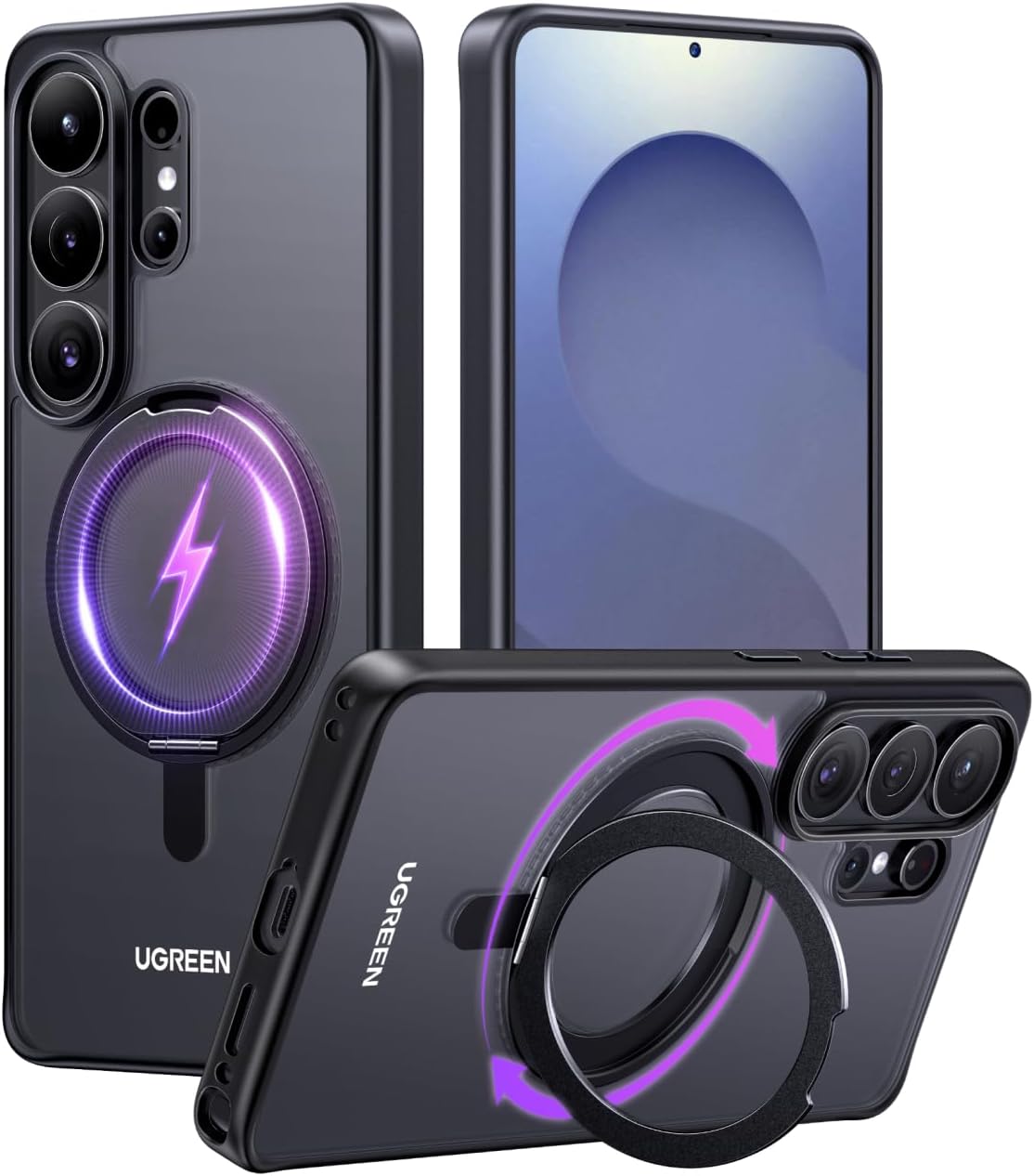 - 【Magnetic Ring Kickstand】Crafted from aerospace-grade aluminum, this UGREEN Galaxy S26U case integrates a versatile metal ring stand. It smoothly adjusts between 0° and 360° for stable hands-free viewing in any orientation and also functions as a ring holder for comfortable everyday use.
